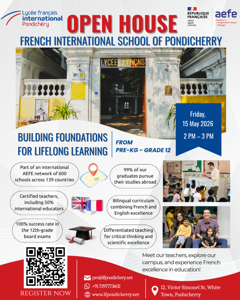 Les établissements de l’AEFE (Agence pour l’Enseignement Français à l’Etranger), réseau dont fait partie le Lycée Français International de Pondichéry, sont reconnus à l’international pour la qualité de leurs pratiques pédagogiques et pour leur recherche permanente de l’excellence.