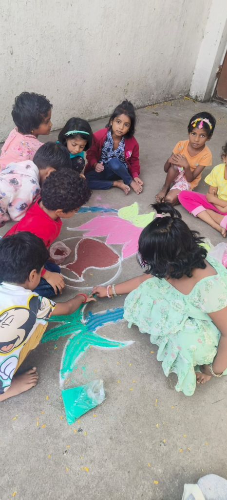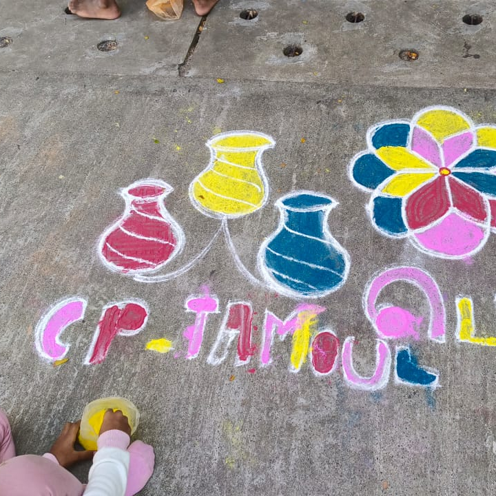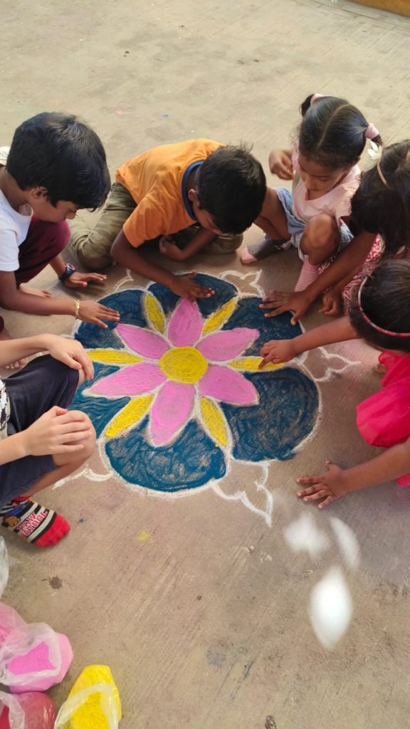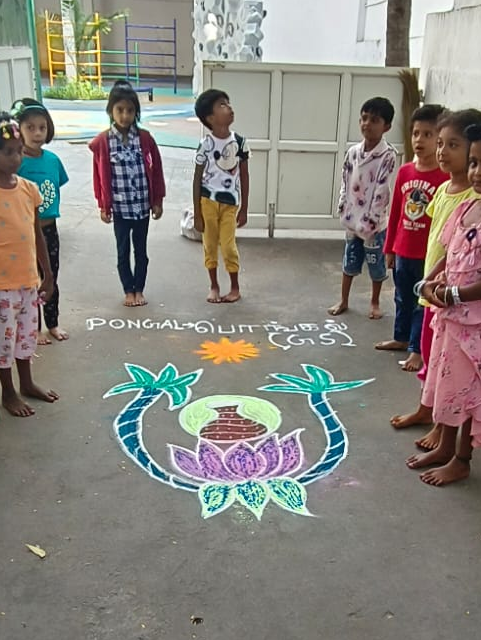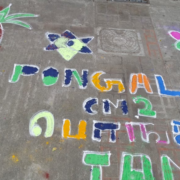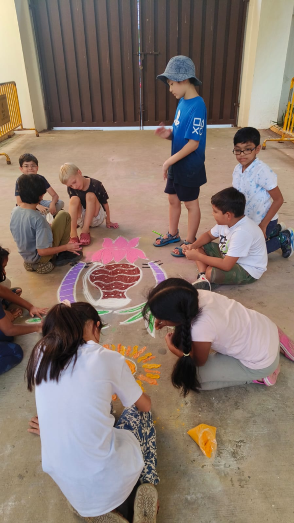 For example, the kindergarten and elementary students had fun making kolams with their teacher during Pongal. Some opted for more traditional designs, while others let their imagination run wild!