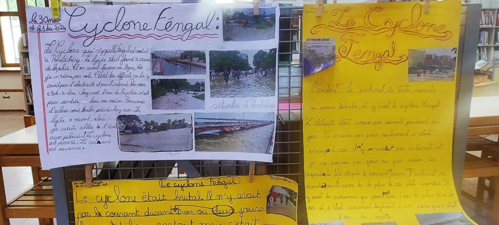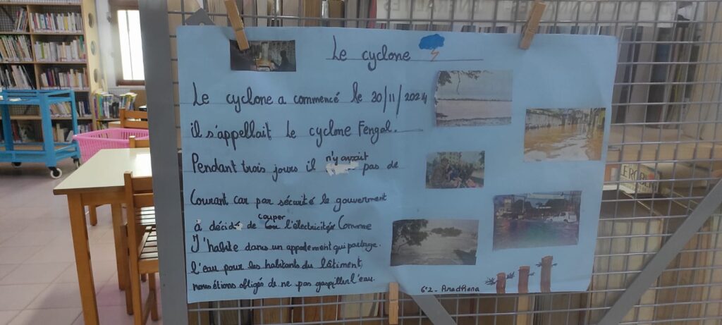 Nos élèves de 6ème ont pris part à un projet pédagogique pour revenir sur ces journées difficiles. À travers leurs exposés, ils partagent leurs témoignages et leurs impressions sur la manière dont ils ont vécu cet événement exceptionnel. Certains ont été témoins de la force de la nature, tandis que d’autres ont observé l’impact direct du cyclone sur leur quotidien.