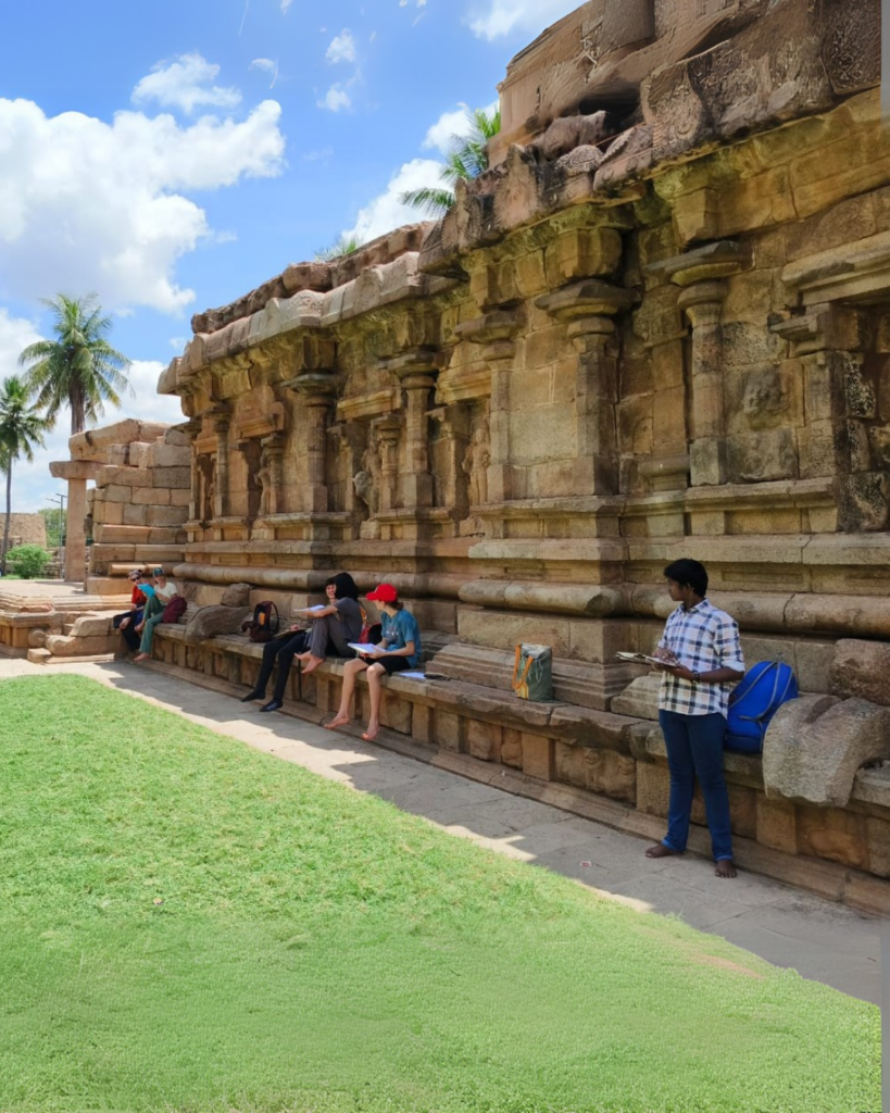 Les élèves de 3ème ont eu l’opportunité de participer à une sortie pédagogique dans le cadre de leur cours d’arts plastiques, le 17 mars 2025, en visitant le temple Gangaikonda Cholapuram, datant du XIe siècle. Ce temple, construit par le grand roi Rajendra Chola I, se situe à 80 km de Thanjavur, ancienne capitale des Chola, et fait partie du circuit des « Grands Temples Chola Vivants ».